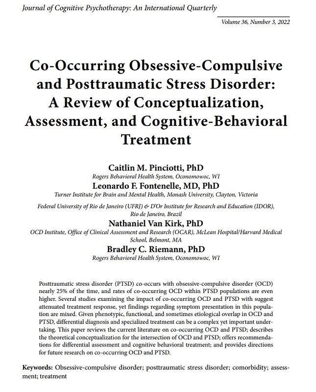 Symptom severity and presentation in comorbid OCD and PTSD: A clinical replication.